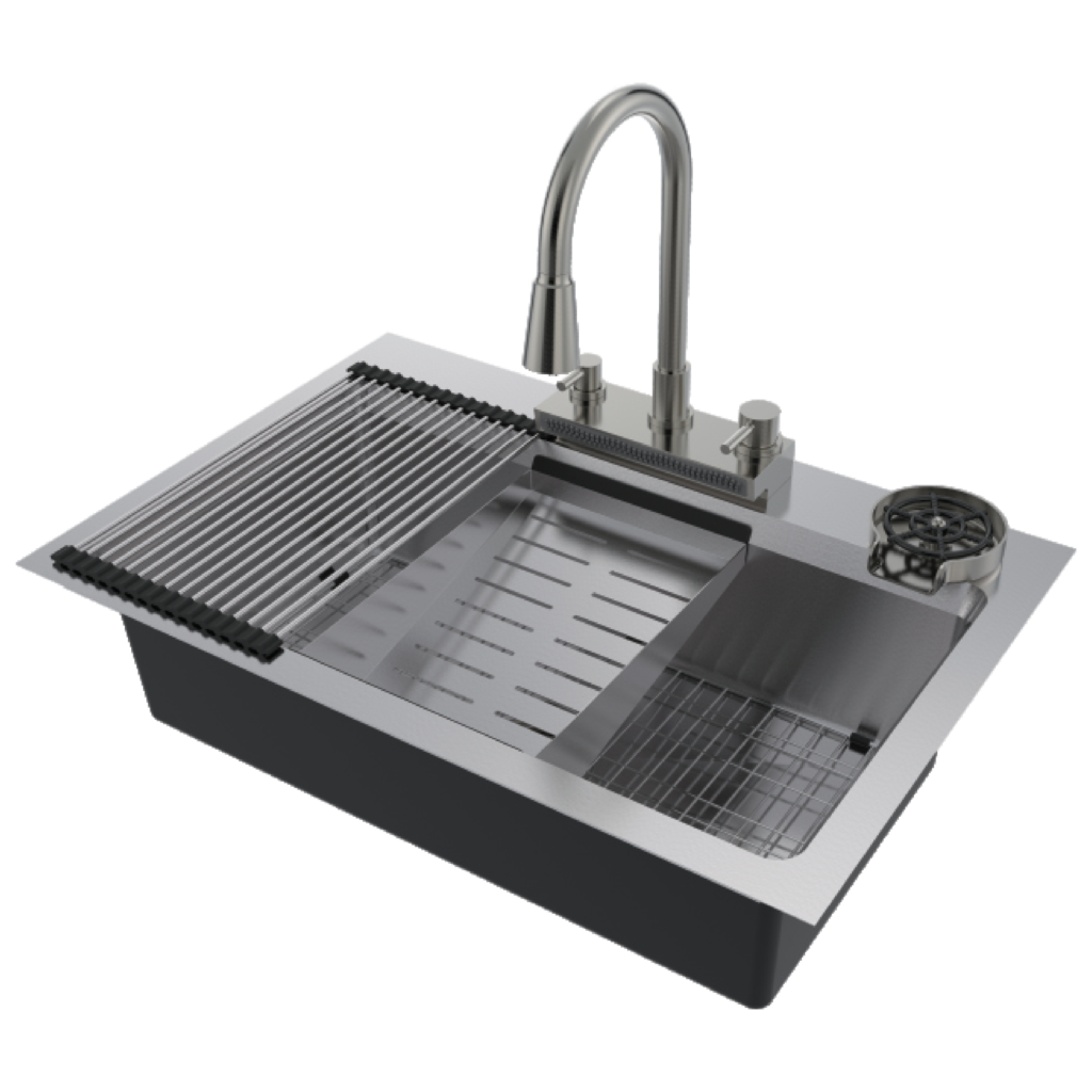Figure 3: Drexmore Waterfall Pull-Down Faucet with Beveled Edge Work Station Sink Kit