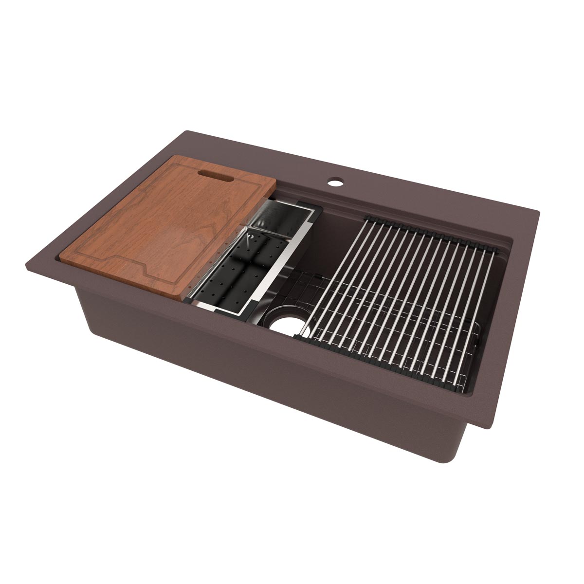 132-7289 Ruston 33″ x 22″ Single Bowl Brown Granite Composite Work Station Dual-Mount Sink