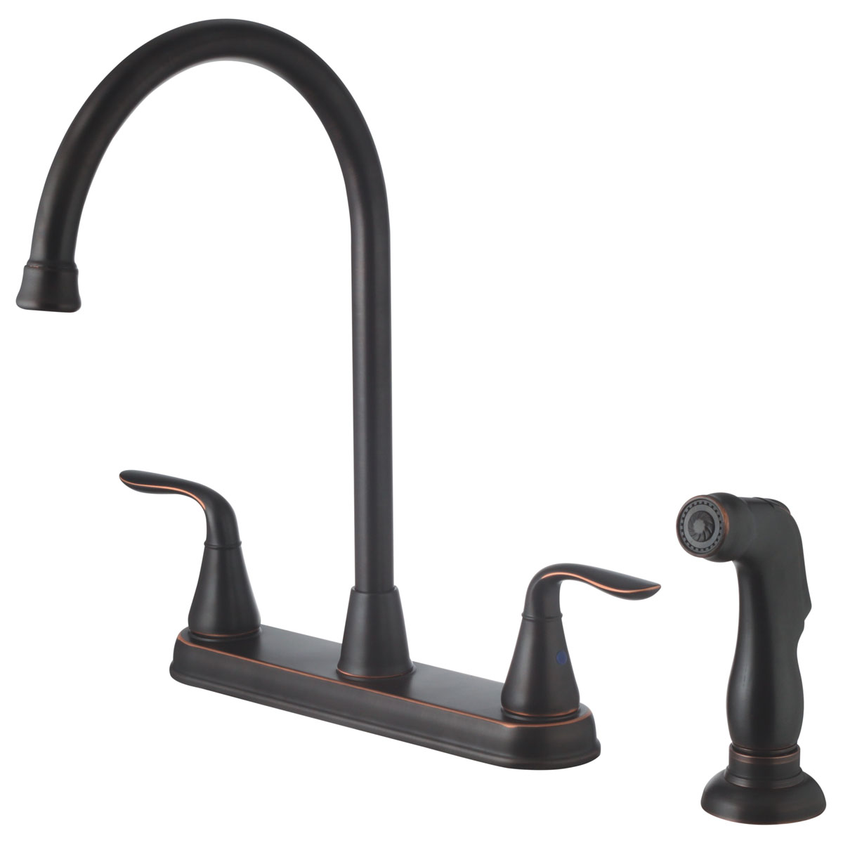 Majestic Two Handle High Arc Kitchen Faucet with Side Spray in an Oil-Rubbed Bronze Finish