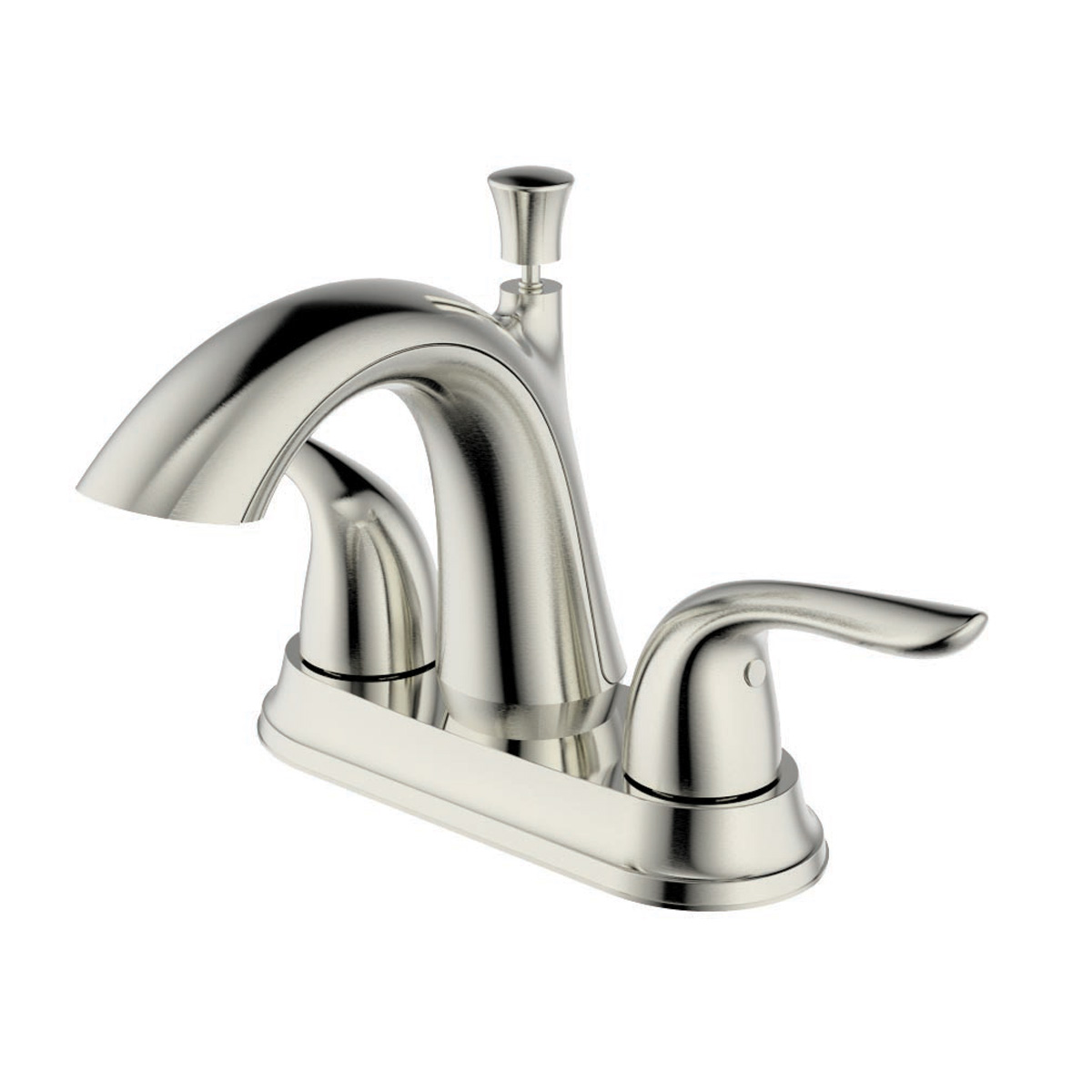 Noble Two Handle High Arc Bathroom Faucet with a Brass Pop-Up Drain in a Brushed Nickel Finish