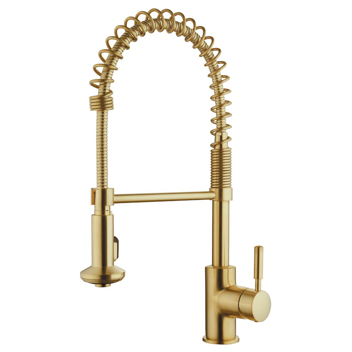 Casmir Single Handle Spring Coil Pull-down Kitchen Faucet in a Matte Gold Finish