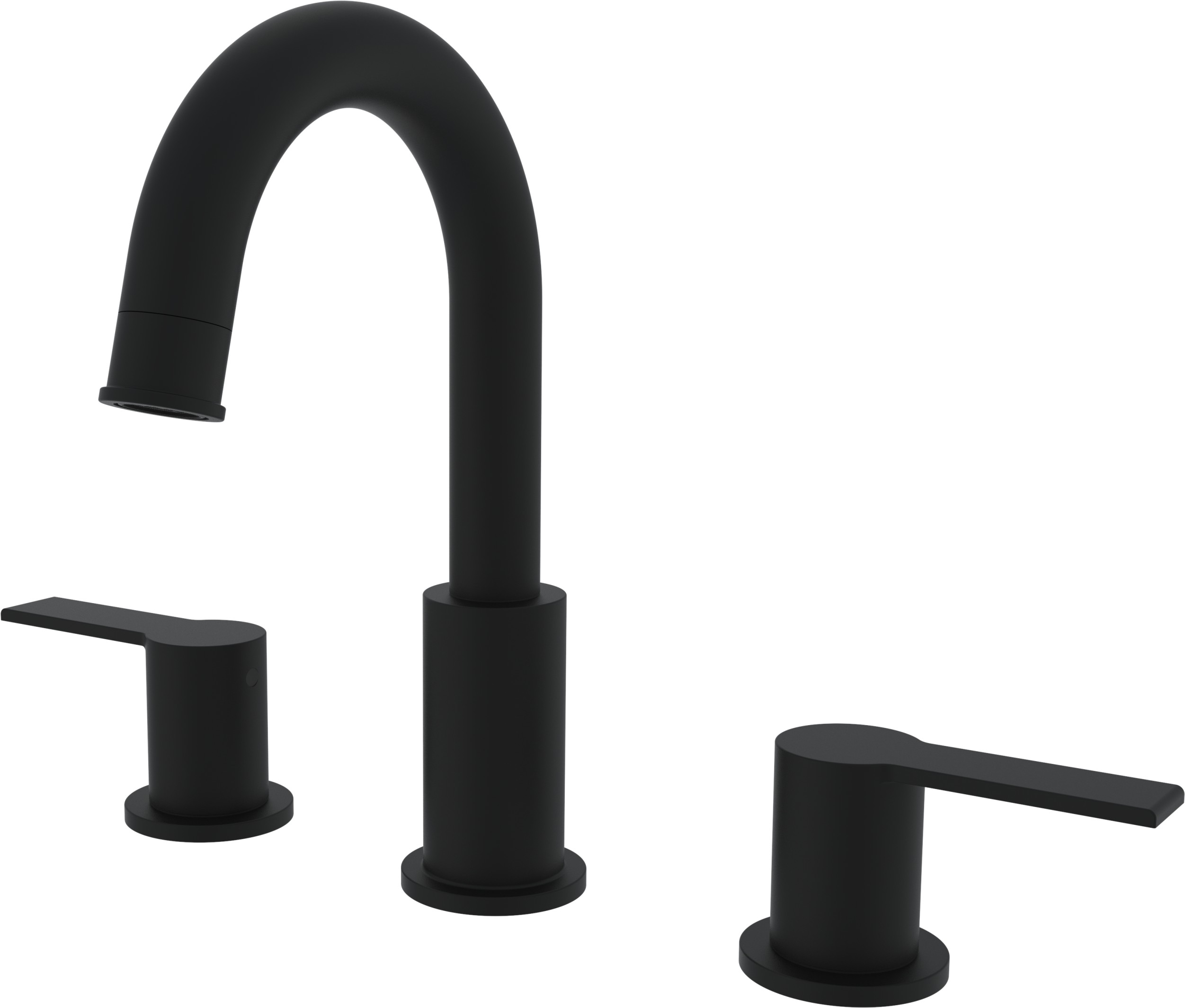 Dillinger Two Handle Wide Spread Lavatory Faucet with Plastic Click Pop-Up in a Matte Black Finish