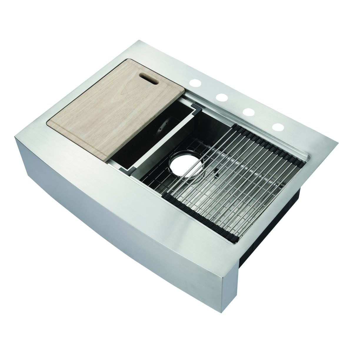 33″ x 25″ Single Bowl Retrofit Work Station R15 Dual-Mount Curved Front Farm Sink
